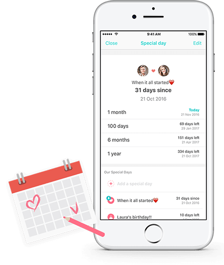 Tell us when you first met, and Between will tell you how many days are left until the next important day in your relationship.